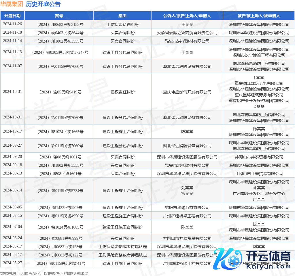 本站音尘开云体育,确认天眼查APP泄漏,近日公布了一则深圳市华晟开辟集团股份有限公司手脚被告/被上诉东说念主的开庭公告,顾惜践诺如下: 案号:(2024)川0683民初3153号审理法院:绵竹市东说念主民法院案由:工伤保障待遇纠纷当事东说念主信息: 原告/上诉东说念主:王某某 被告/被上诉东说念主:深圳市华晟开辟集团股份有限公司开庭日历:2024年11月26日确认统计,近一年内以深圳市华晟开辟集团股份有限公司为当事东说念主的历史开庭公告有46则,其中案由为“开辟工程施工公约纠纷”的公告以14则居首,其次为“生意公约纠纷”有11则,“劳务公约纠纷”有6则。历史开庭公告(前20条)如下:
