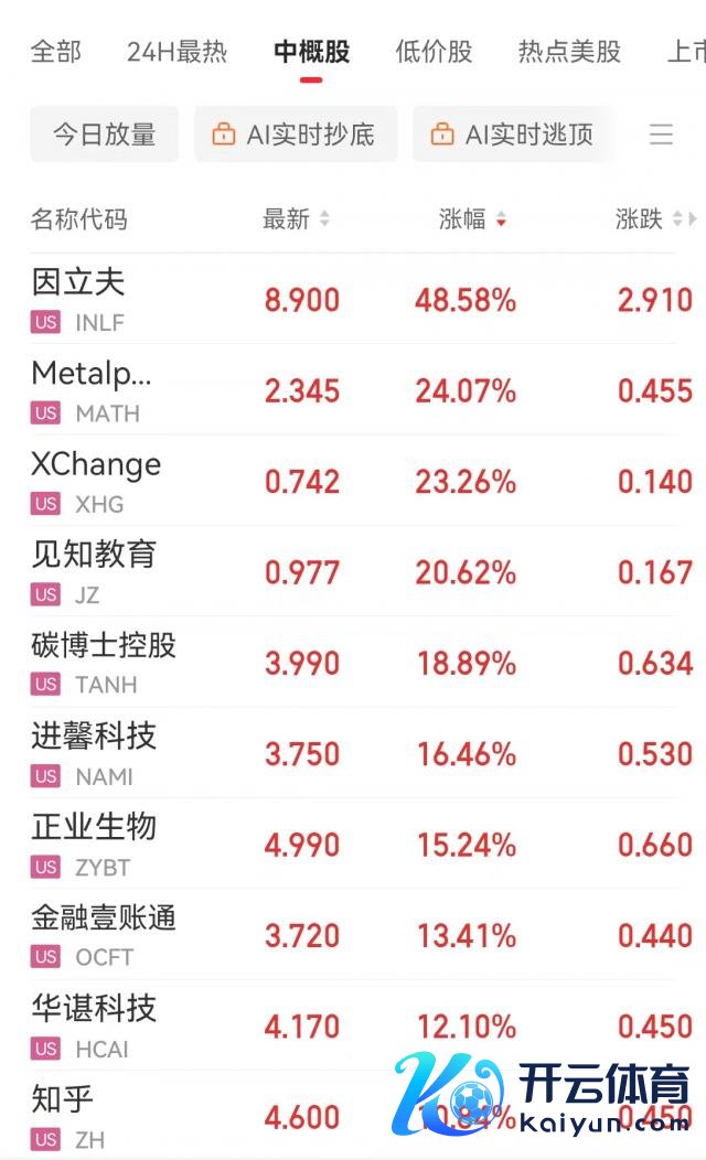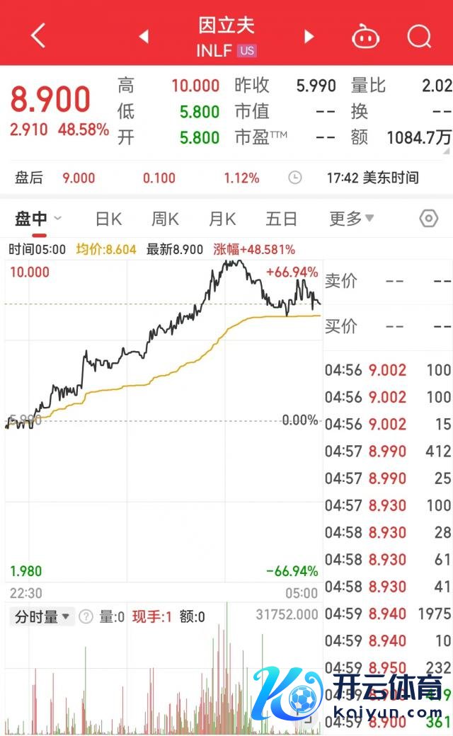 中概股因立夫(INIF)大涨 48.58%,盘中一度涨近 70%。