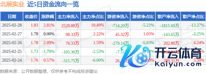 本站音信开云官网切尔西赞助商,摒弃2025年2月28日收盘,北辰实业(601588)报收于1.83元,飞腾2.81%,换手率2.81%,成交量74.75万手,成交额1.37亿元。