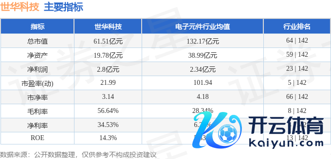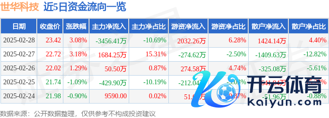 本站音信,适度2025年2月28日收盘,世华科技(688093)报收于23.42元,高潮3.08%云开体育,换手率5.17%,成交量13.57万手,成交额3.23亿元。
